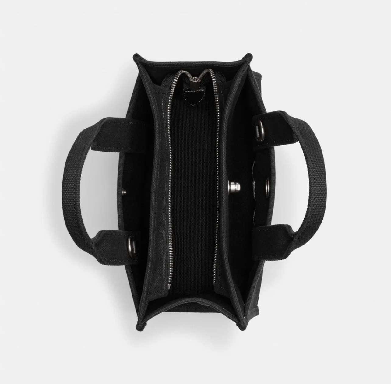Carry as much (or as little) as you like with our lightweight Cargo tote. Detailed with our cursive Coach script embroidery and iconic turnlock closure, this compact 26 has an open interior with room for an iPad, two outside pockets for easy organization and a removable webbing strap for shoulder or crossbody wear. Crafted to last, this versatile carryall is made with cotton sourced from farms that use regenerative agricultural practices* and inspired by our commitment to reducing our impact on the planet. Now no matter where you go with it, you’ll always be toting around a little extra love for the planet. *Say what? Just the bag itself, not the trims and straps. But did you know that regenerative agricultural practices help to maintain and rejuvenate land, increase biological diversity, and soil health, and could lead to increased carbon absorption? (Neat!)