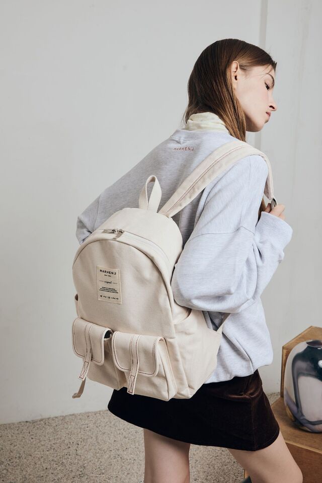 Backpack made of canvas, boasts a casual yet unique design. Features an attractive logo patch and eye-catching stitch colors. Very practical and convenient thanks to different section and pockets.