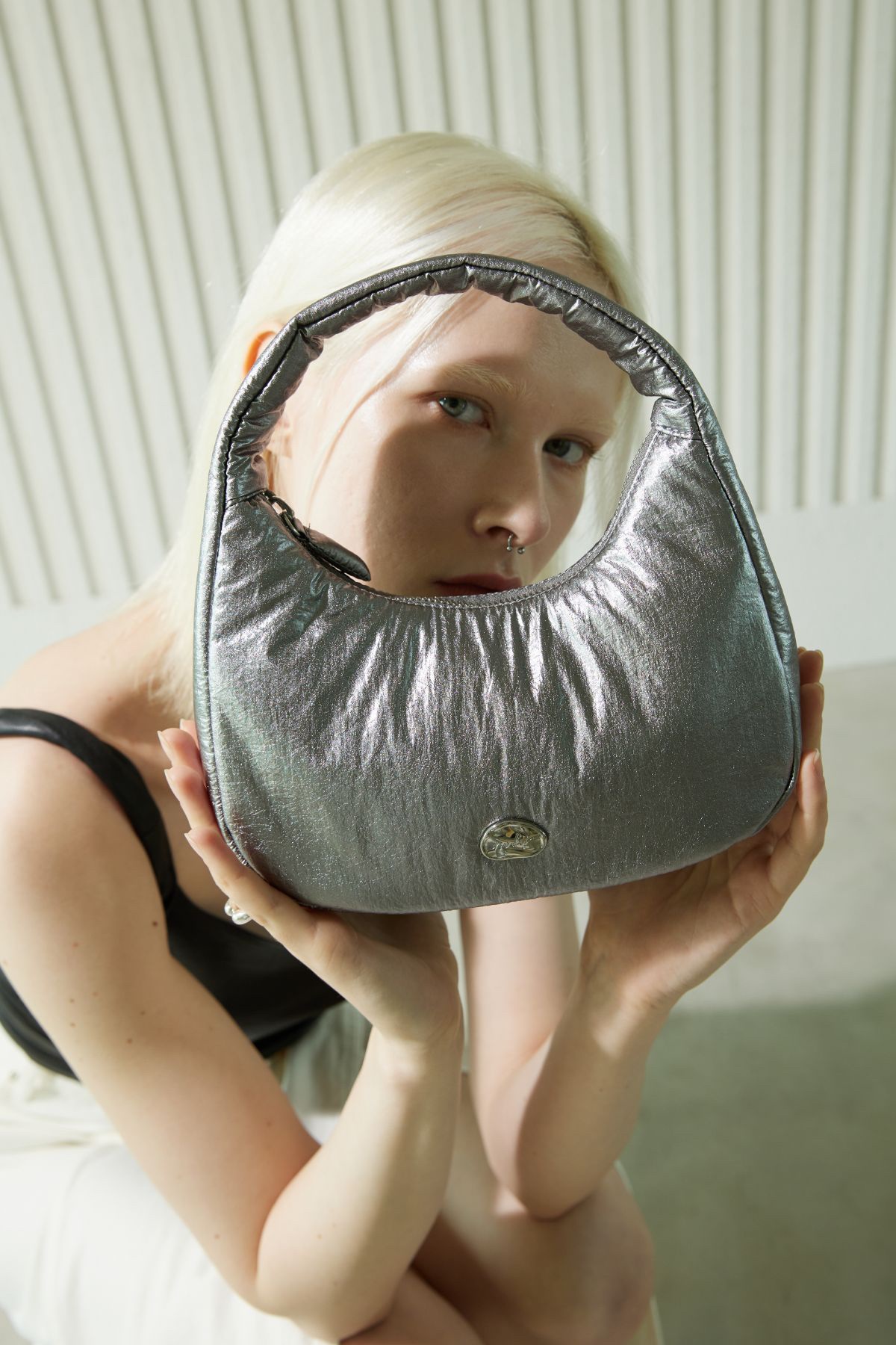 A cute mini tote bag with a unique texture. It features a cute pebble-like logo details as a unique point, and securely stores your belongings with a zip closure.