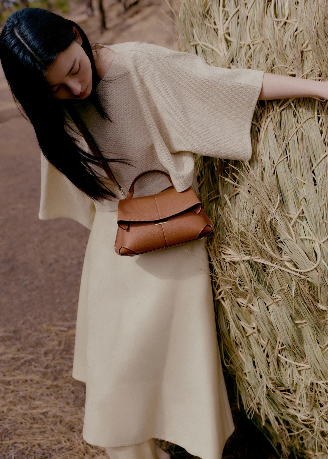 Made by leather goods artisans in Ubrique, Spain. Two interior compartments and a patch pocket. Polène branded clasp and organically designed bottom studs bearing the Polène logo. The name “Mokki”, borrowed from Finnish, means “cabin”. This reflects the comforting feel created by the leather’s bulk.
