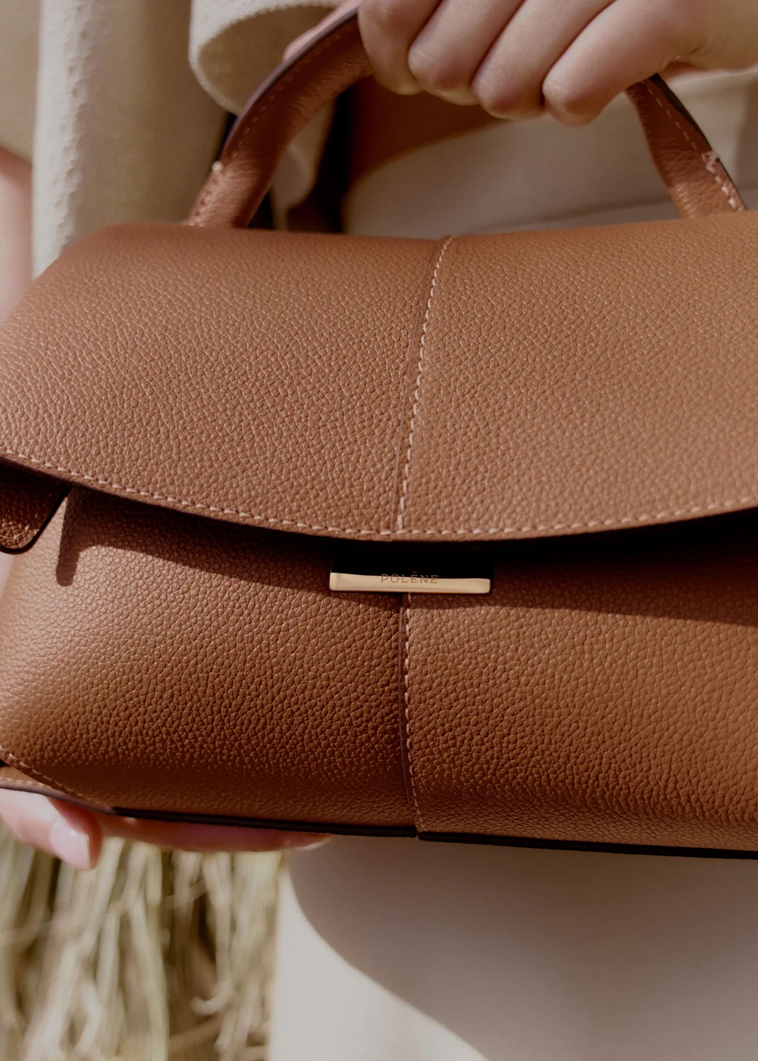 Dimensions: 13.5x27x8 cm. Weight: 546 g. Two interior compartments and a patch pocket. Adjustable shoulder strap that allows the model to be worn crossbody or over the shoulder as well as carried by hand: 43 cm (short length) and 54.5 cm (long length) Polène branded clasp and bottom studs with an organic design bearing the Polène logo.