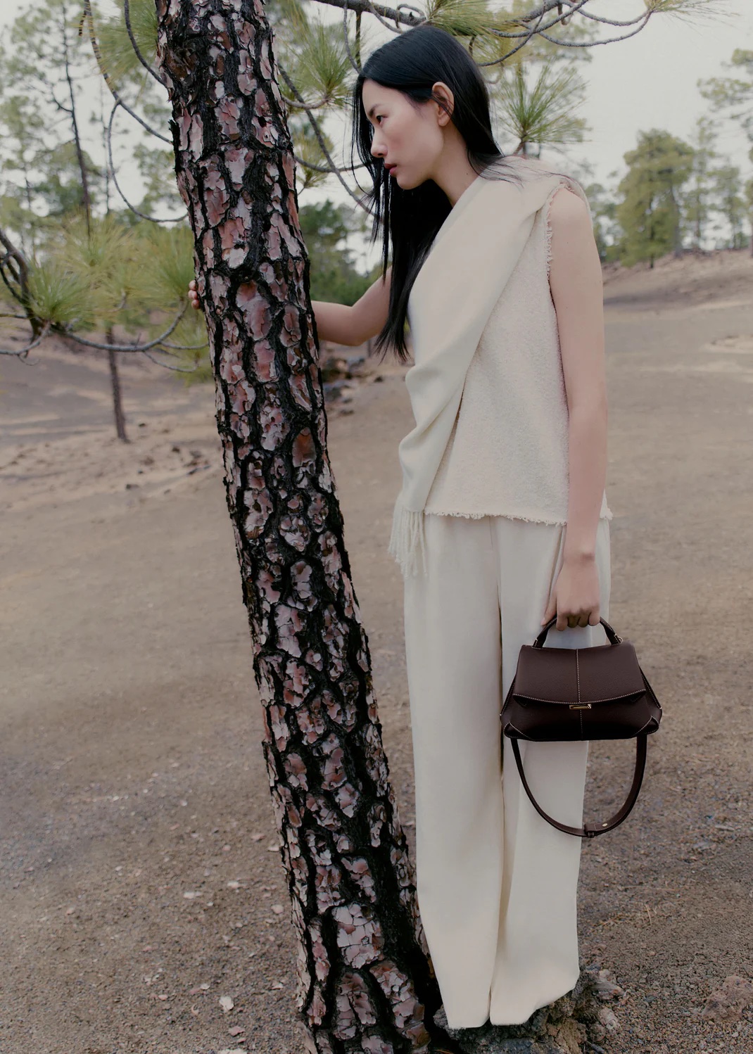 Ingeniously constructed from thirty-six leather panels, the “Mokki Mini” model celebrates the art of folding through a subtle interplay of textured and smooth leathers. The bag’s interior is divided into compartments, all protected by a flap that features an engraved clasp. With its adjustable shoulder strap held in place by snap hooks, the model smoothly adapts to your movements.
