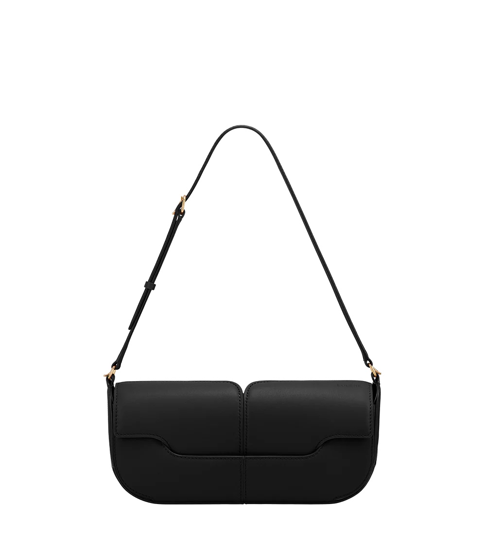 Dimensions: 25.5 x 12 x 5.5 cm Weight: 380g Flap closure with two concealed magnets wrapped in leather. Adjustable shoulder strap that can be worn short on the shoulder, featuring an engraved Polène buckle. Leather patch pocket on the interior. Tone-on-tone Polène logo and symbol applied with hot embossing.